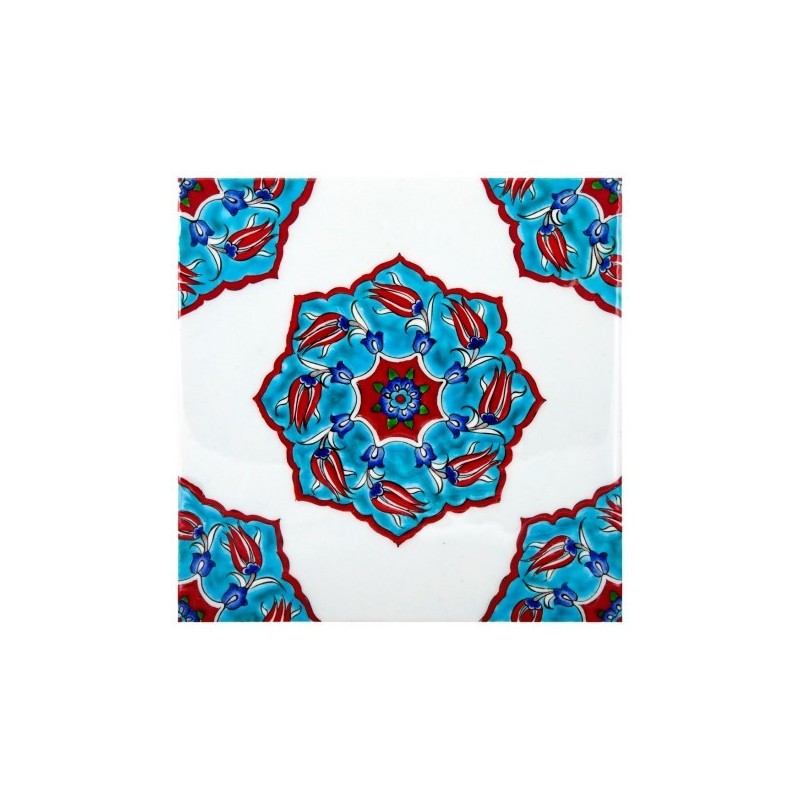 Vous souhaitez mettre un peu de couleur dans votre salle de bain ? Le carreau Firiamat associe des motifs floraux à de magnifiques couleurs turquoises, rouges et bleues.