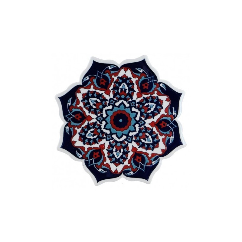 Le design du dessous-de-plat Koray présente des bords chantournés et combine motifs géométriques et floraux. Vous aimerez leur style original et exotique, inspiré des célèbres céramiques d'Iznik.